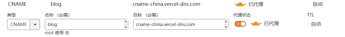 添加一条CNAME记录,主机记录为你的域名,记录值为Vercel域名。